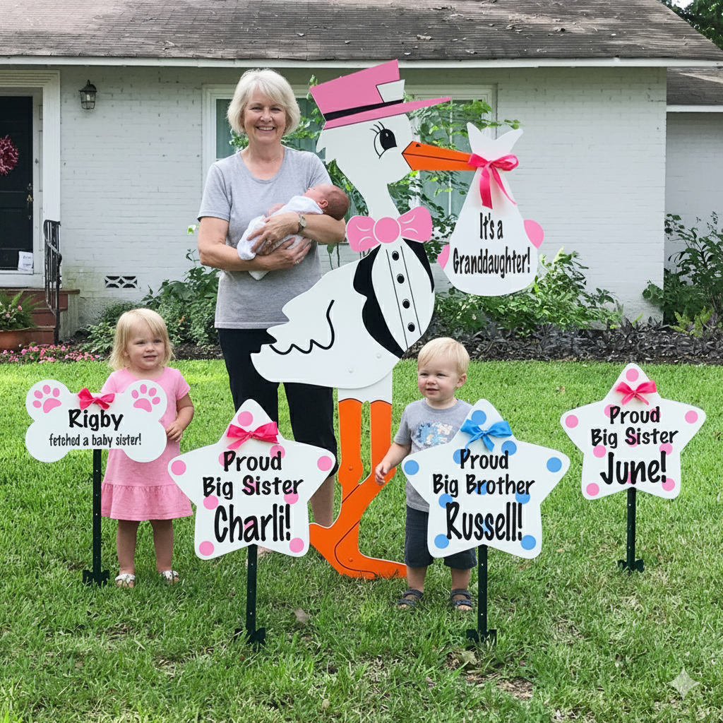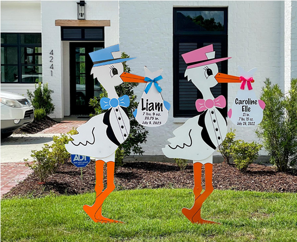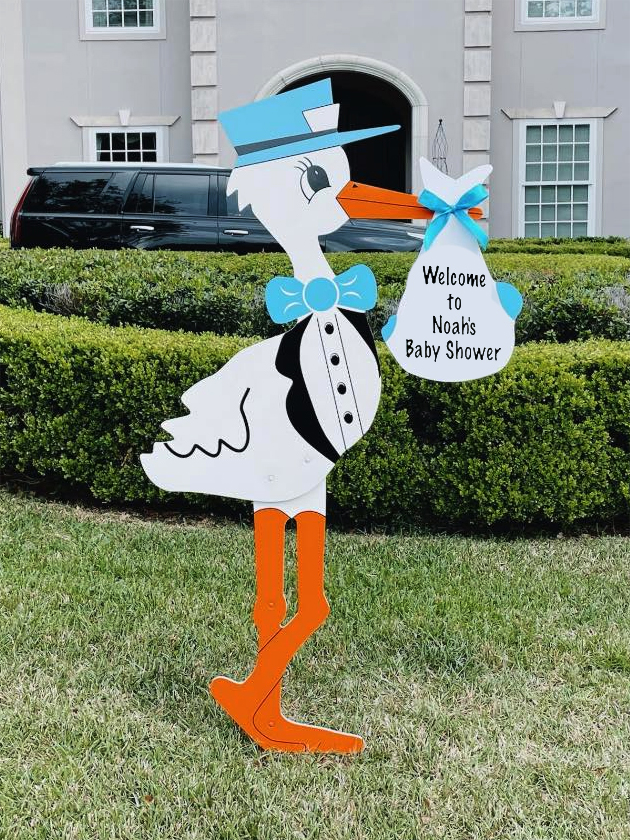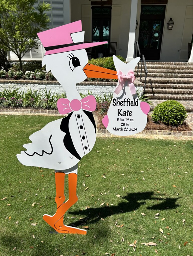 Why settle for flowers that fade or balloons that deflate when you can make your baby’s homecoming unforgettable? Our 6ft stork sign rentals in pink or blue are larger-than-life and impossible to miss i.e. a joyful announcement that simply won’t fit in an envelope! Serving Palm Beach County and Martin County, these charming storks turn your front yard into a celebration, letting neighbors and friends share in the excitement of your little one’s arrival. Because this milestone deserves more than a gift… it deserves a grand welcome!