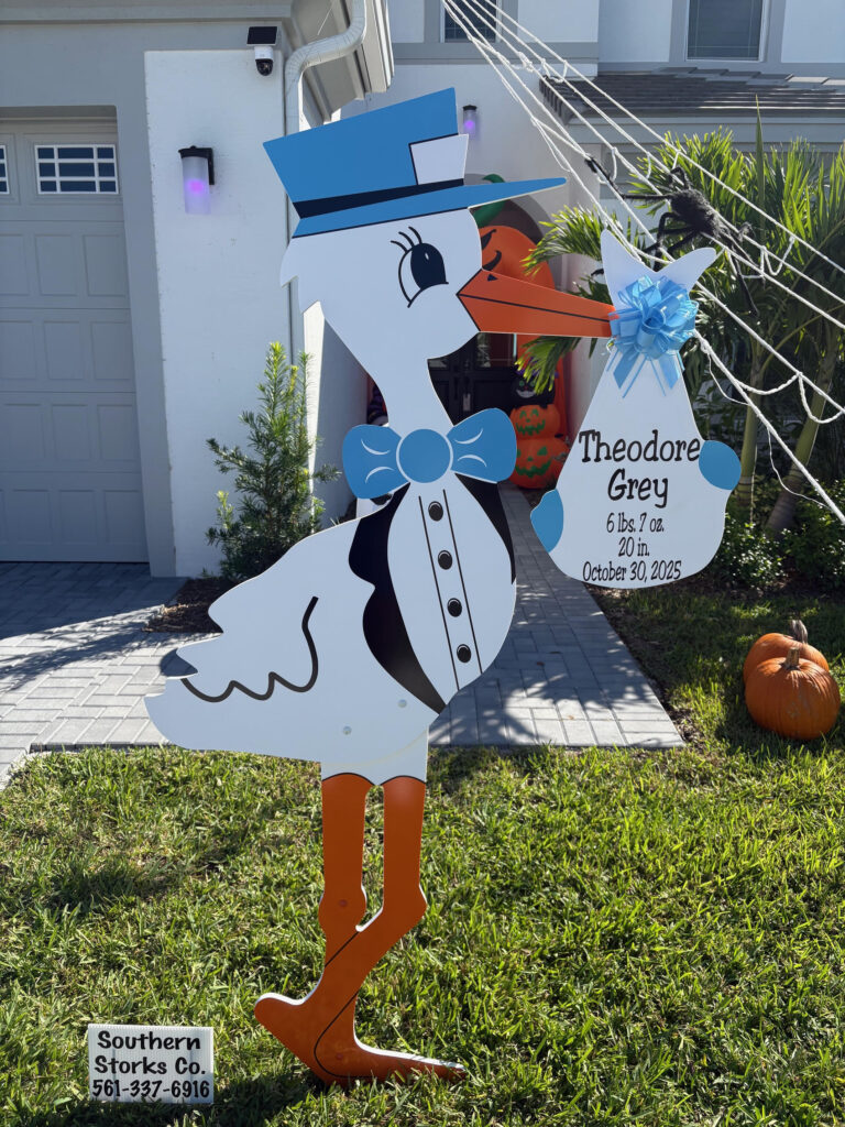 Baby Theodore arrived on October 30th, bringing so much joy (and maybe a few treats!) to his proud family. Our adorable blue stork sign looked picture-perfect on the front lawn, sharing the exciting news with family, friends, and neighbors.